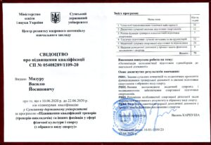Вітаємо викладачів факультету фізичної культури Мазура В.Й., Скавронського О.П. та Чистякову М.О. з успішним проходженням курсів за програмою “Підвищення кваліфікації тренерів (тренерів-викладачів) та інших фахівців у сфері фізичної культури і спорту (з обраного виду спорту)” (10-22.06.2020 р.)