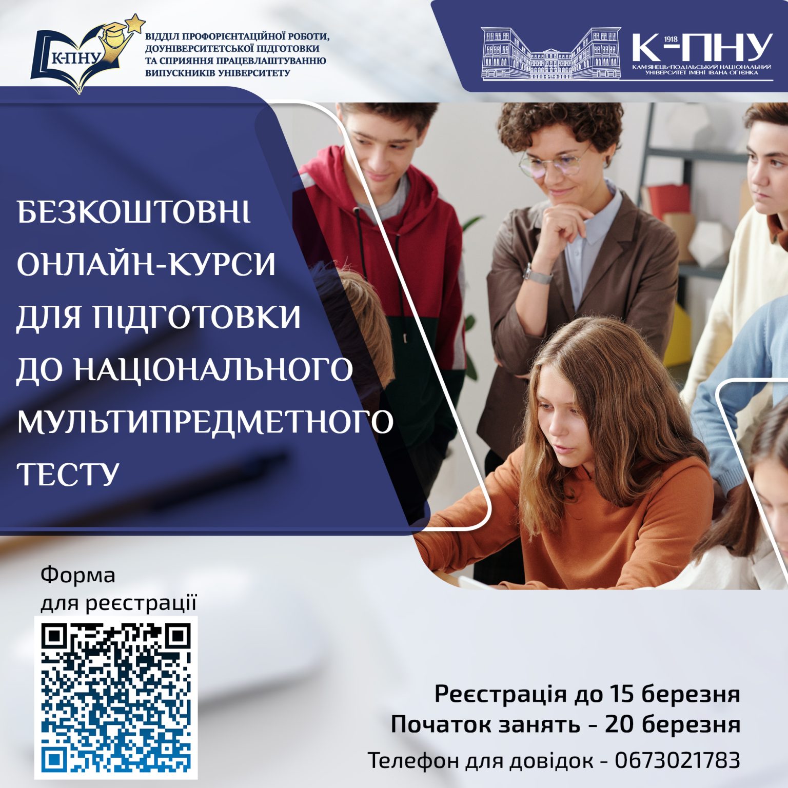 Кам’янець-Подільський національний університет імені Івана Огієнка розпочинає набір слухачів на безкоштовні онлайнові курси для підготовки до національного мультипредметного тесту (НМТ), який складатимуть абітурієнти в 2023 році.