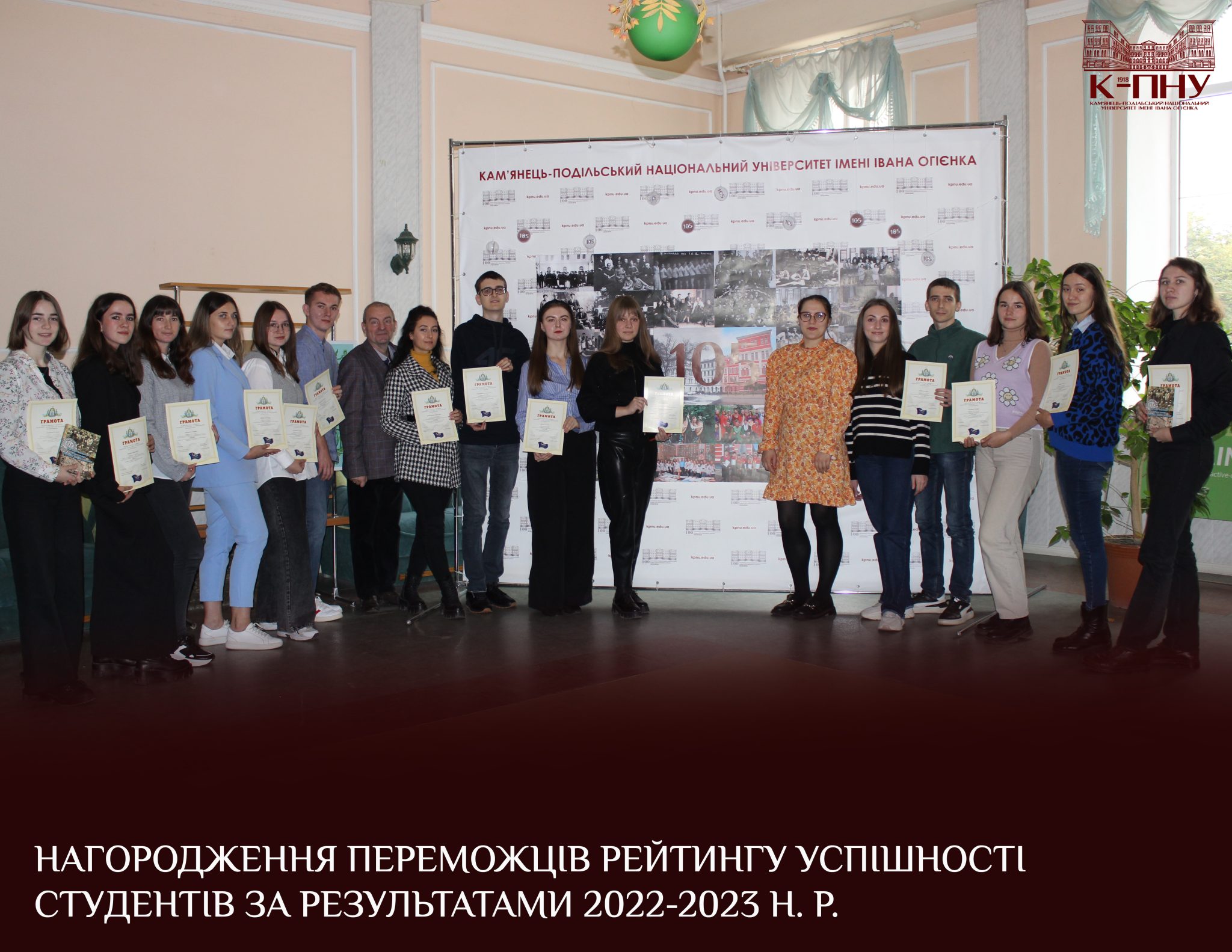 20 жовтня в межах святкування річниці в залі засідань К-ПНУ за сприяння адміністрації та профкому студентів, аспірантів та докторантів відбулося традиційне нагородження переможців рейтингу здобувачів вищої освіти серед студентів факультетів/інституту та університету за результатами 2022-2023 н. р.