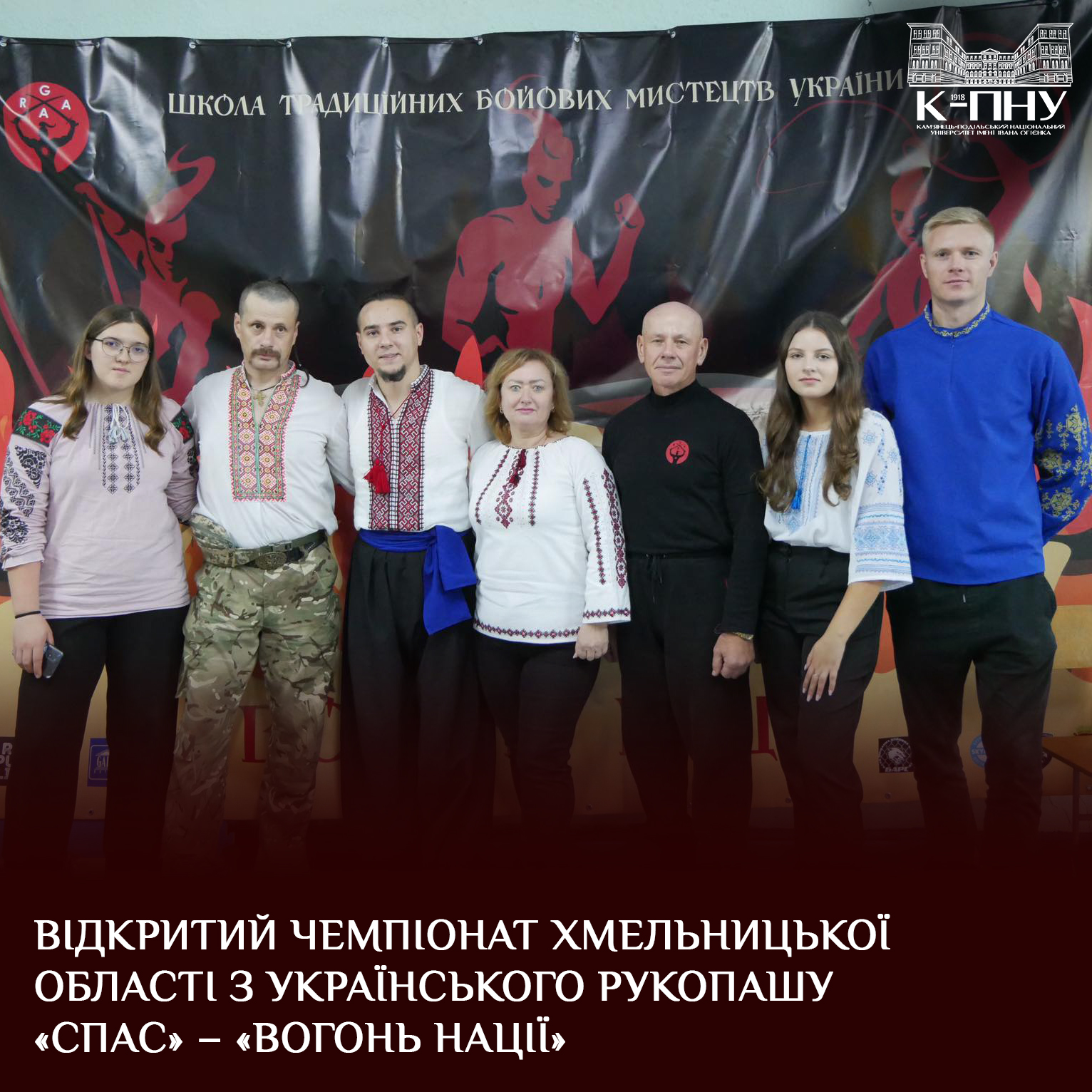 03-05 листопада на базі факультету фізичної культури Кам’янець-Подільського національного університету імені Івана Огієнка, за сприяння кафедри спорту і спортивних ігор, відбувся відкритий чемпіонат Хмельницької області з Українського рукопашу «СПАС» – «Вогонь Нації», присвячений захисникам України та пам’яті загиблих героїв України.
