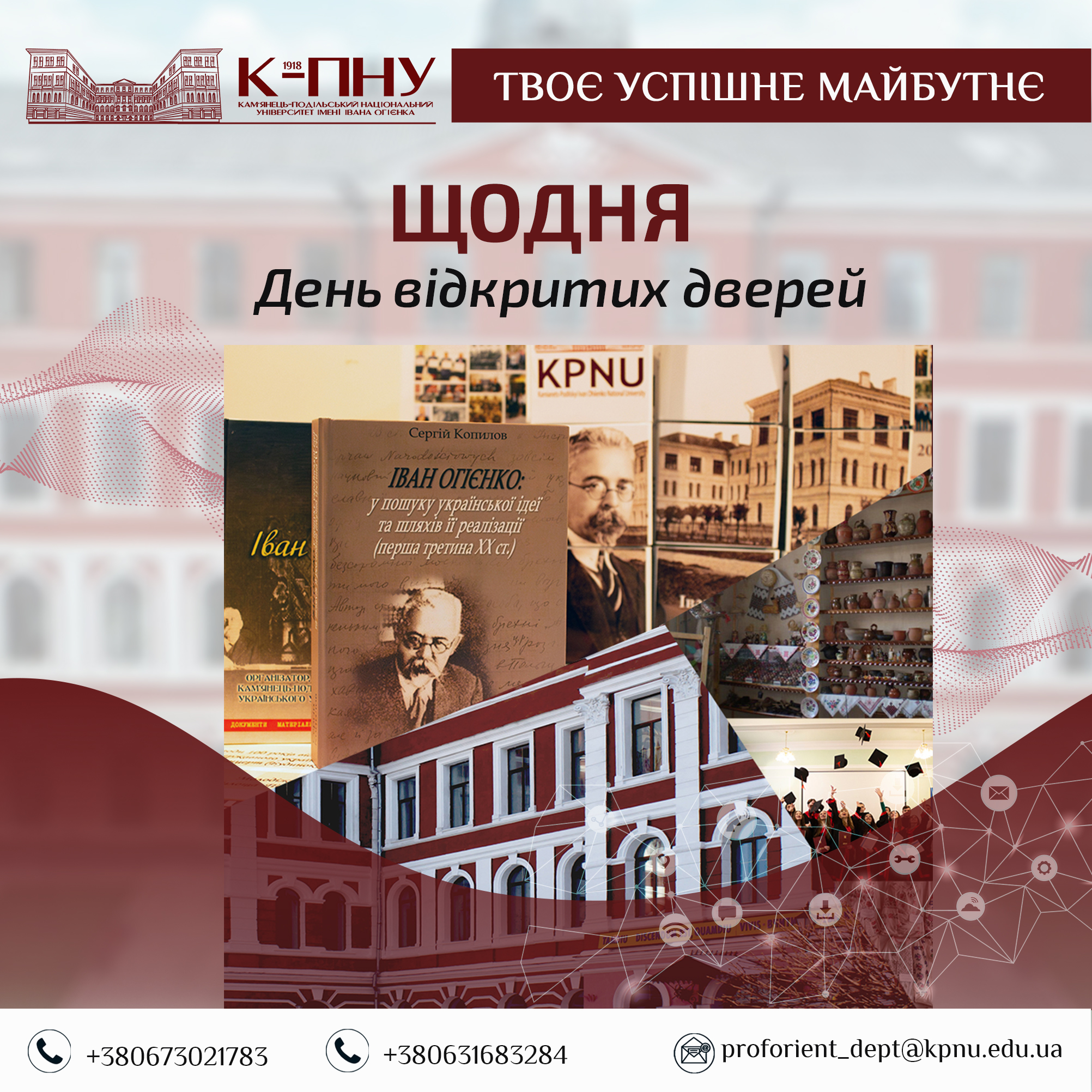 Кам’янець-Подільський національний університет імені Івана Огієнка як один з інноваційних освітніх і наукових центрів Поділля та України радо відчиняє перед вами свої двері.